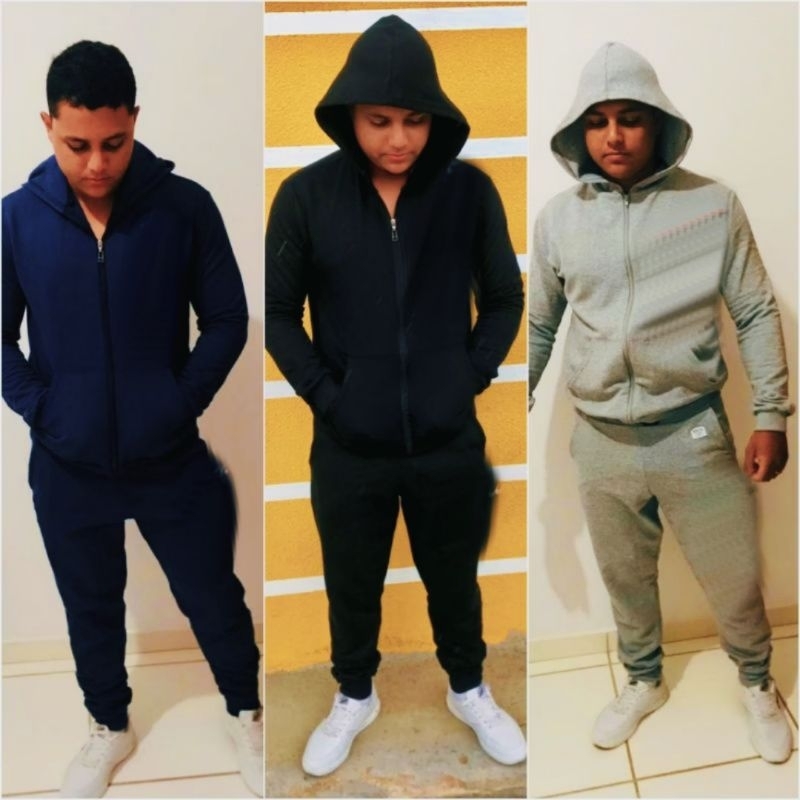 Conjunto Moletom Blusa e Calça Masculino Agasalho Com Zíper e Capuz