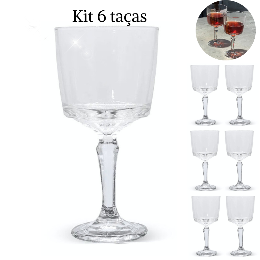 kit 6 taças de vidro tipo cristal para suco, vinho agua e drinks