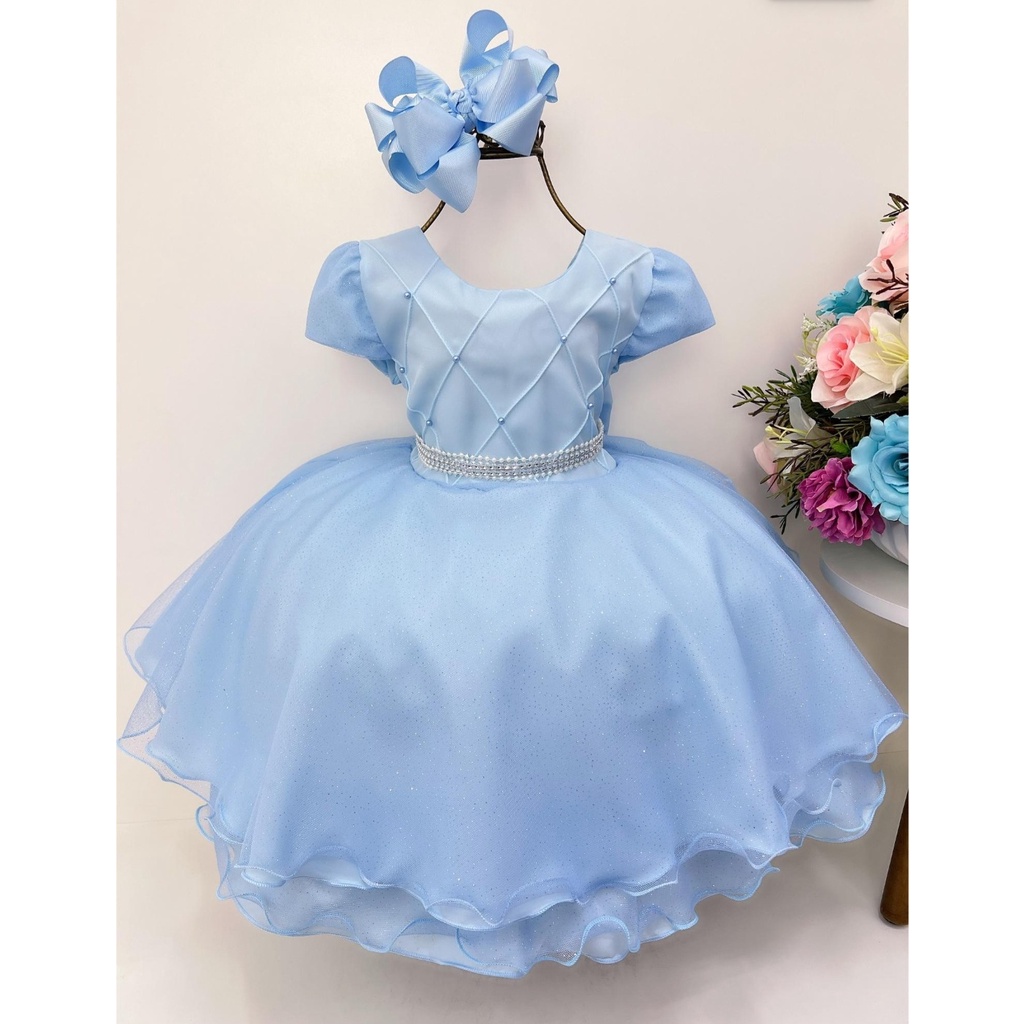 Vestido infantil azul cinderela 1 a 4 anos galinha pintada