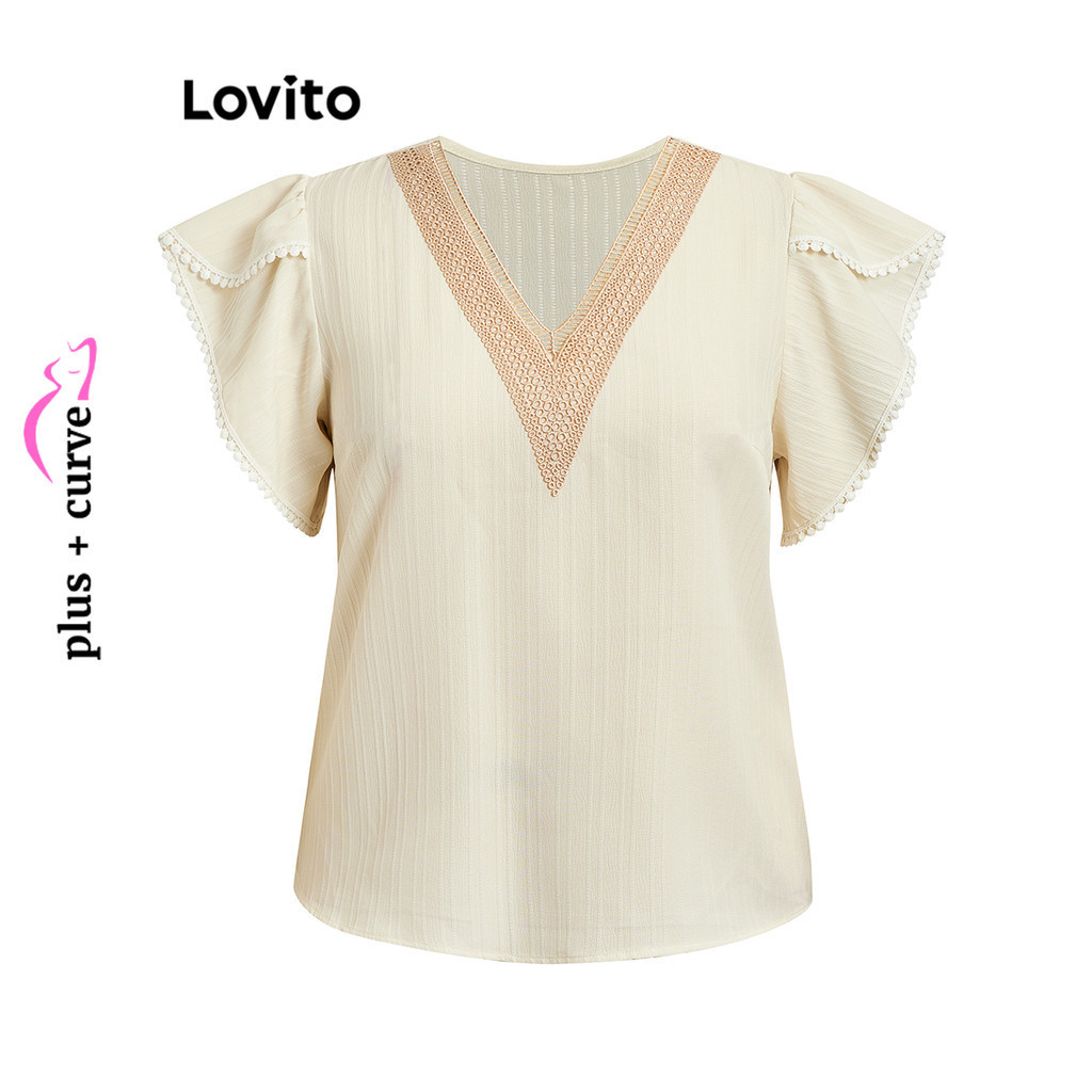 Lovito Blusa Plus Size Curva Casual De Renda Lisa Com Bordado De Ilhós Para Mulheres LBL07149