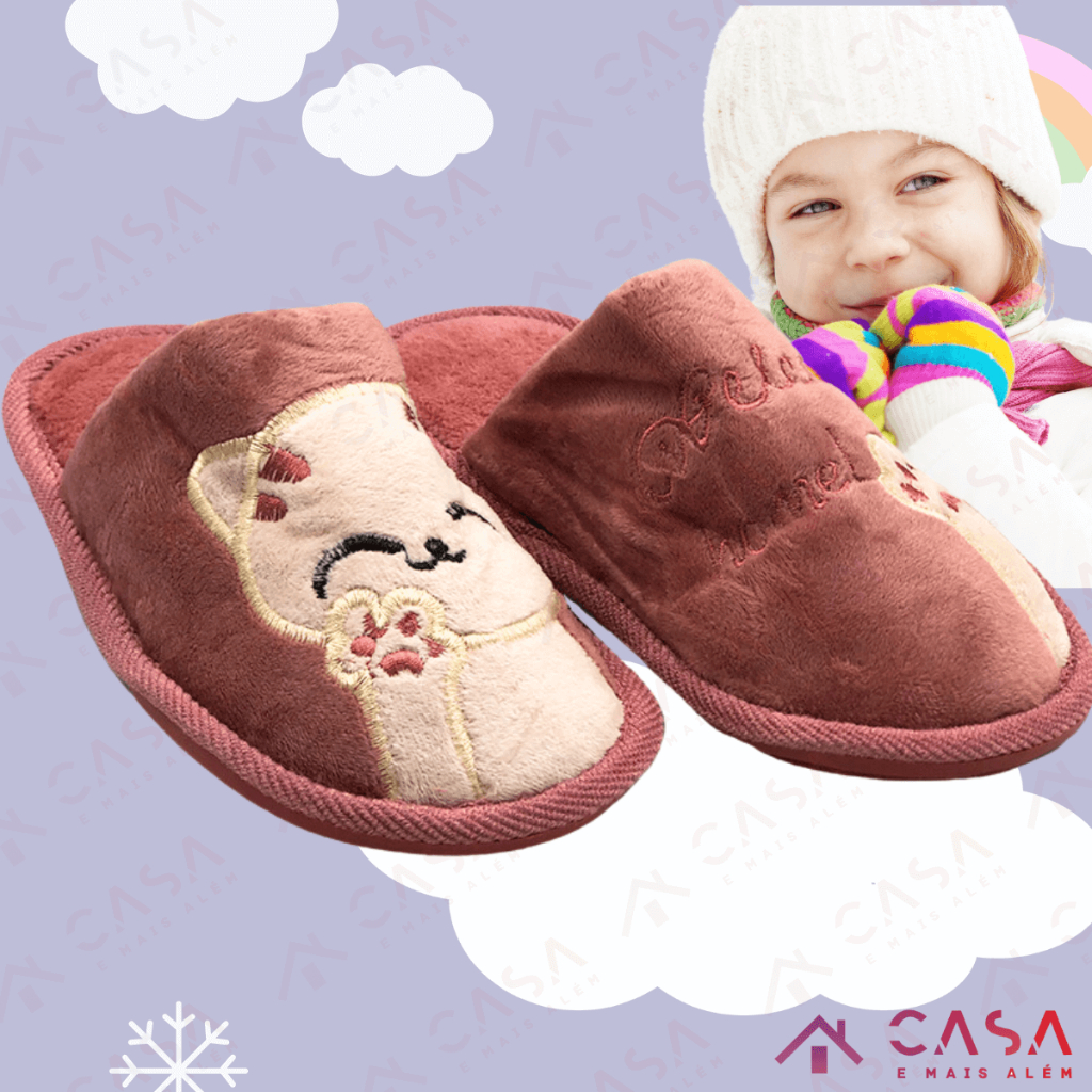 Pantufa Infantil de gatinho super macia, quente e confortável para crianças