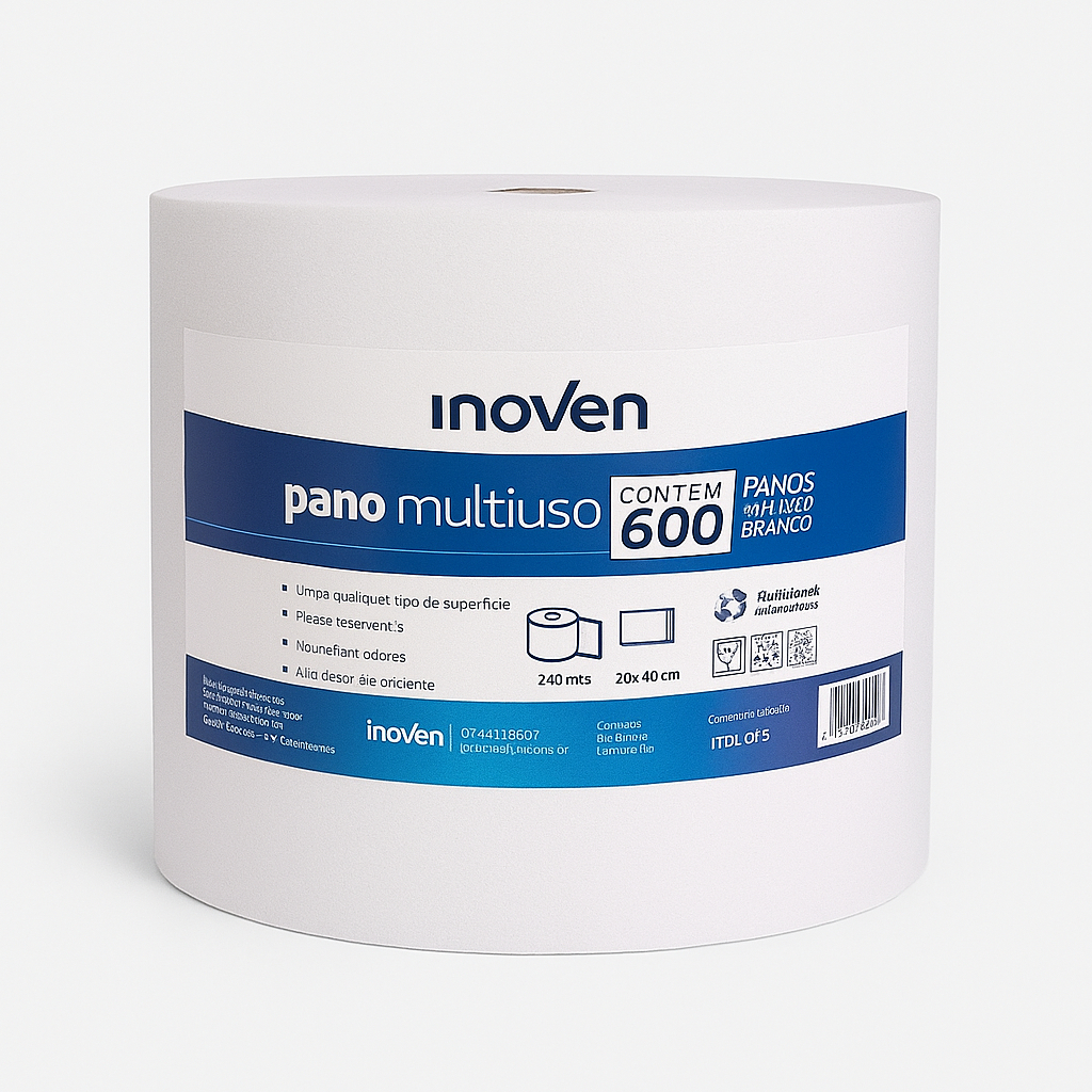 Pano Multiuso Para Limpeza Rolo Branco 600 Unidades 20X40cm 240 Metros