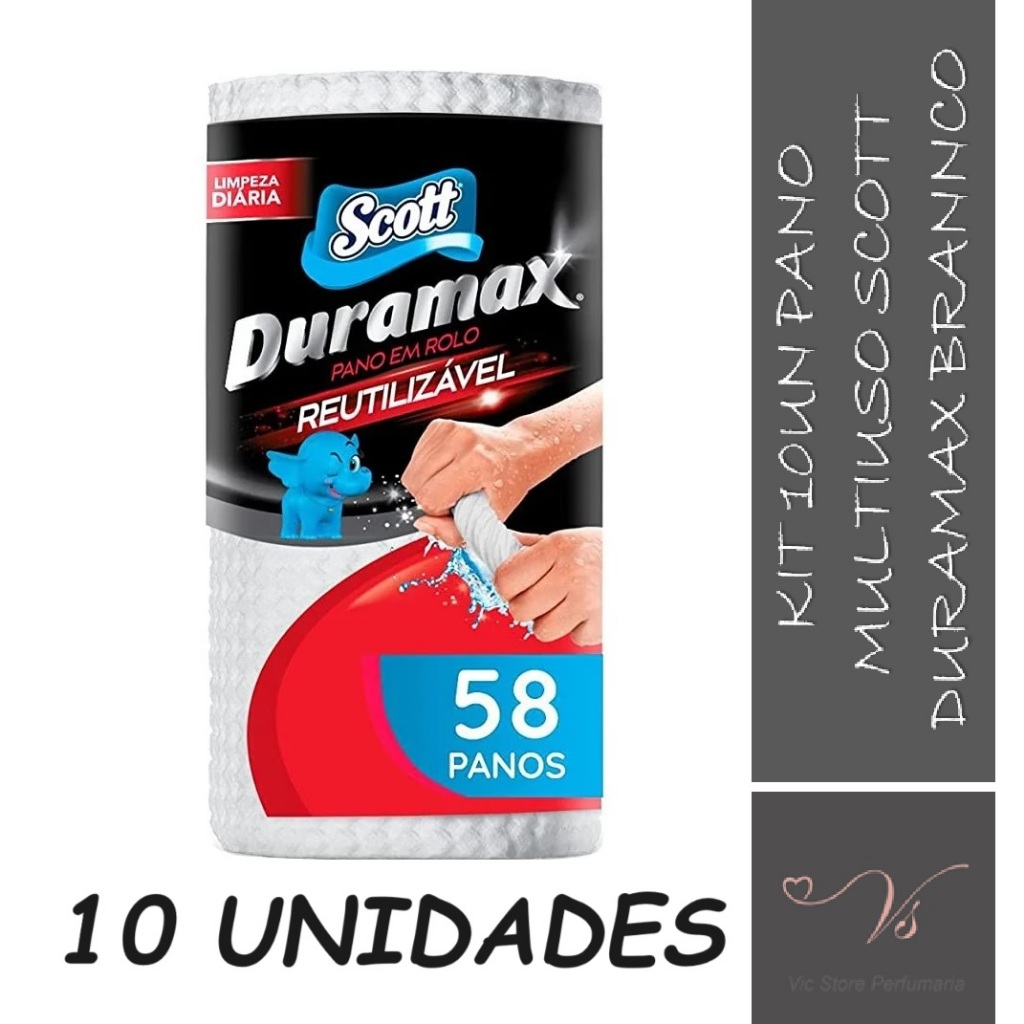 Kit com 10 rolos Pano multiuso Scott Duramax Branco 1 rolo c/58 panos