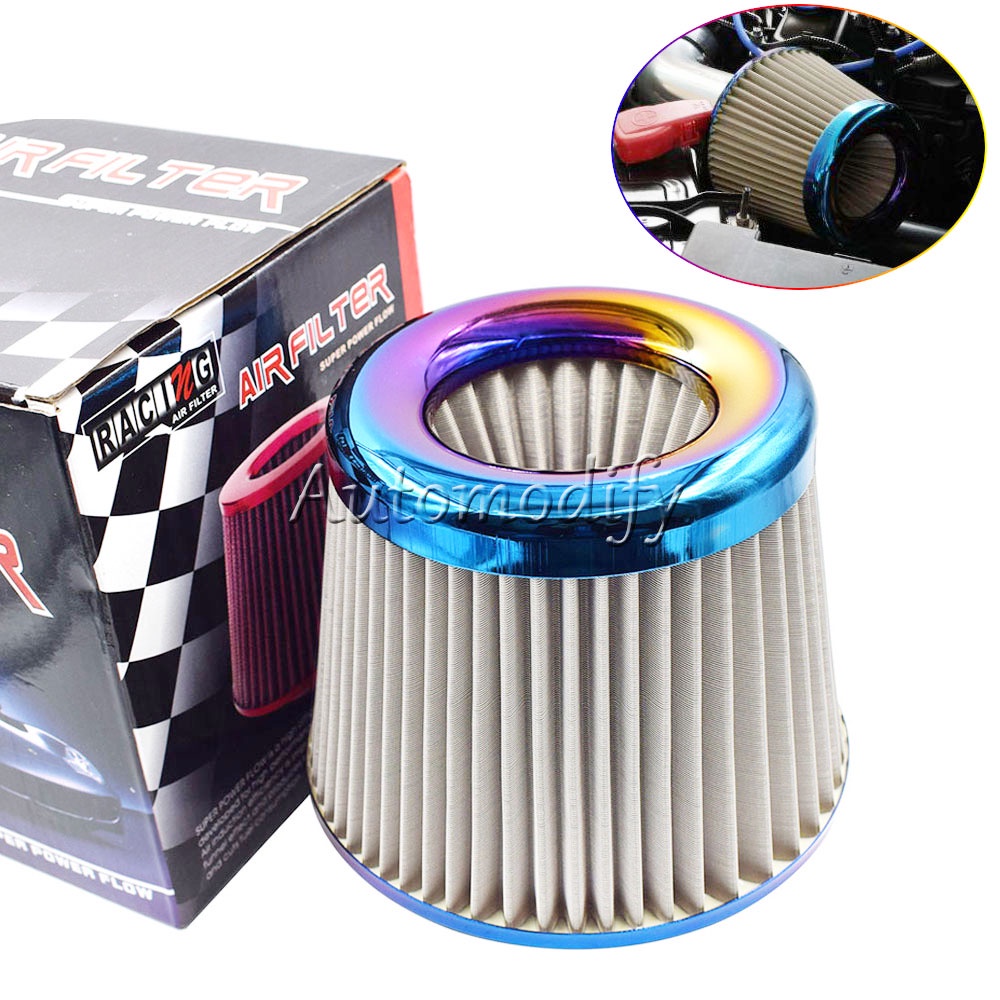 Universal Racing Car Filtro De Ar Para Carros Aço Inoxidável Queimado Azul 3 " 76mm Entrada De Energia Limpador De Frio De Alto Fluxo