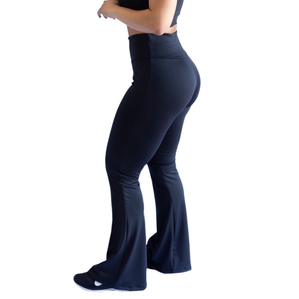Calça Legging Flare Bailarina Boca de Sino Preta Cós Alto Zero Transparência Cintura Alta Lisa Suplex Feminina