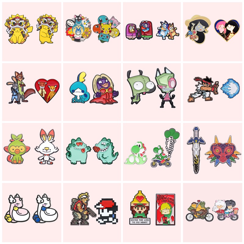 2 Pcs/Set Anime Broche Periférico De Esmalte Personagem E Jogo Lapela Alfinete Lembrança Mochila Acessórios Para Amigos