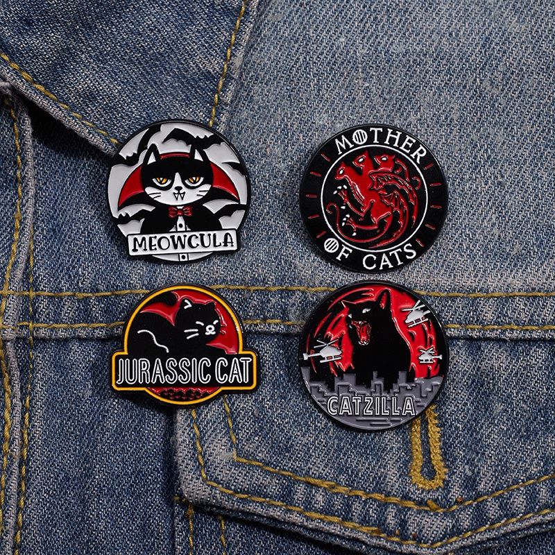 Broche De Esmalte De Gato Cartoon Godzilla , Jogo De Tronos , Pôster De Filme Do Parque Jurássico Mochila Crachá Acessórios De Roupas Jóias De Presente Para Amigos