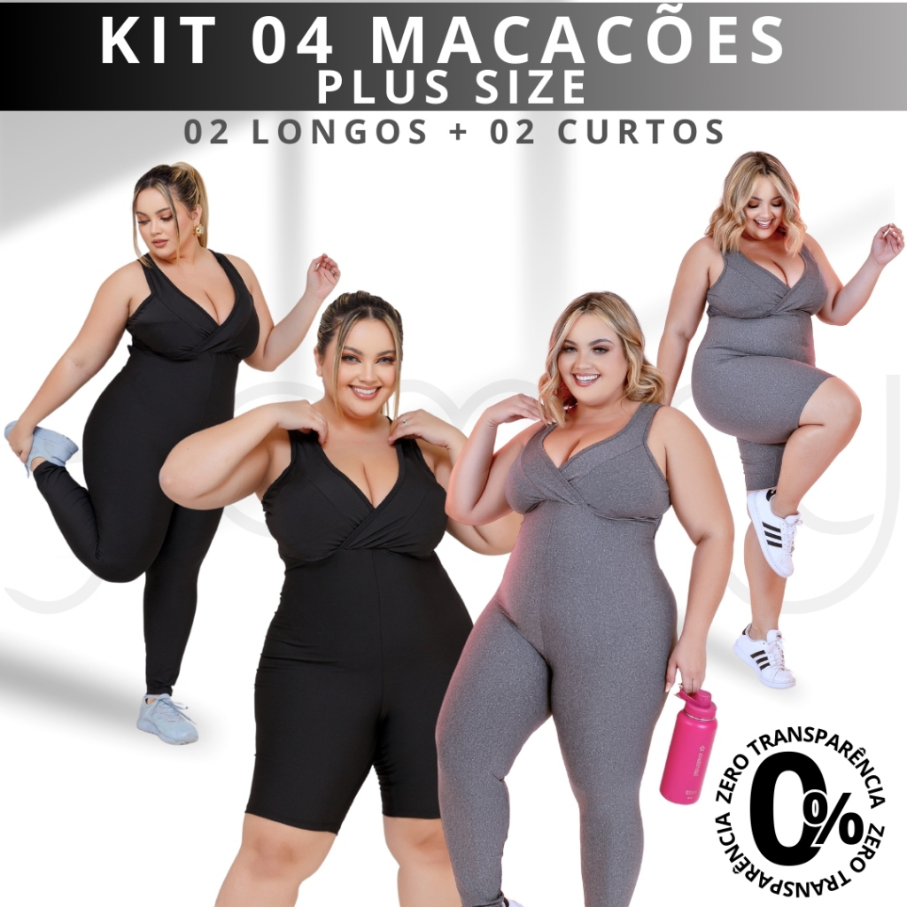 Kit 4 Macacão PLUS SIZE Fitness - 02 LONGO (CALÇA) - 02 CURTO (SHORT)