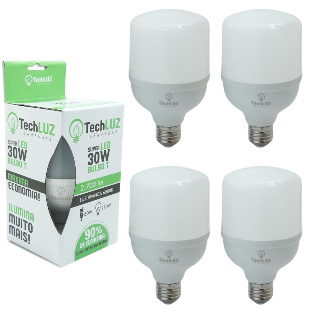 Kit 10 Lampadas Led 30w Bulbo Branco Frio 6500k Bivolt Alta Potencia 1 Ano de Garantia - ULTRALUZ