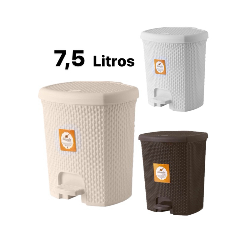 Lixeira Rattan 7,5 Litros Com Pedal Compacta, Para Banheiro, Cozinha, Escritório, Quarto.