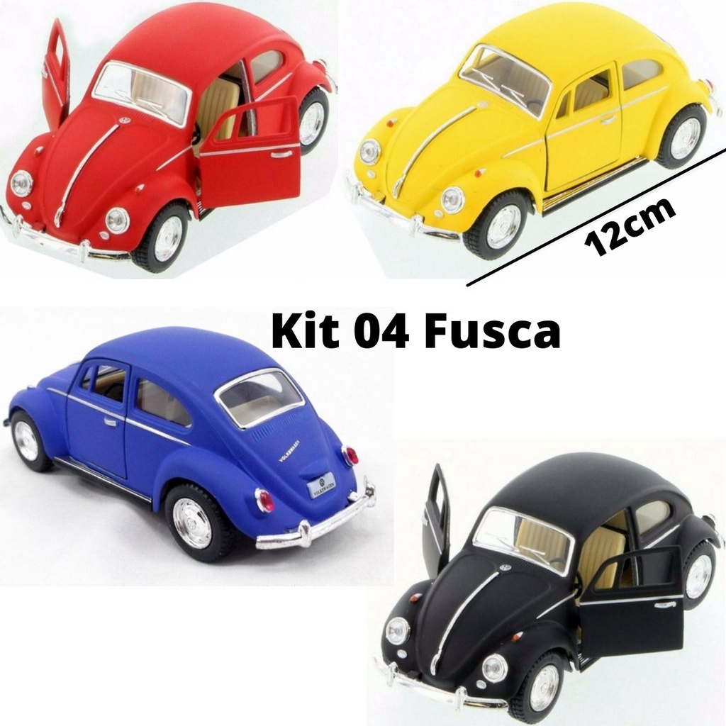 Kit 4 Volkswagen Fusca Fuska Fuka de Ferro Miniatura Carrinho de Coleção Inesquecível Nacional Fusquinha Herbie 12cm