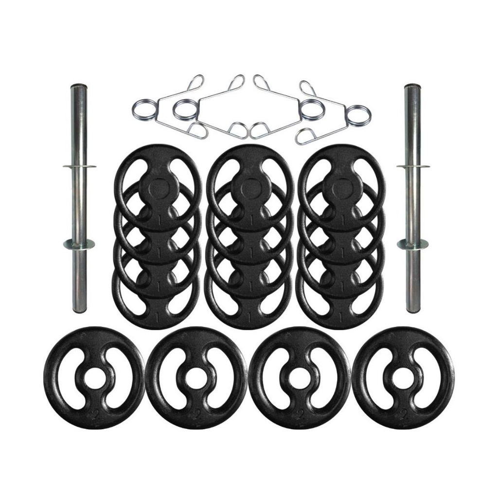 Kit com Barras de Halteres e Anilhas de Ferro - 22 Peças
