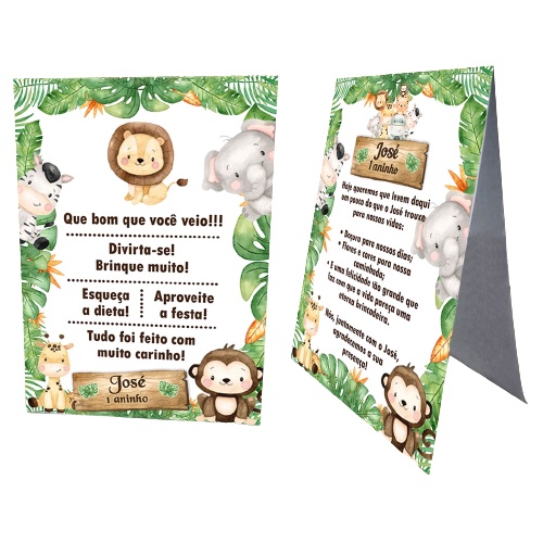 Agradecimento de Mesa tema Safari Baby aquarelado Personalizado/Fazemos qualquer Tema