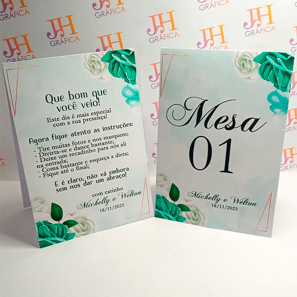 Cartão de agradecimento para mesa casamento verde esmeralda com número de mesa personalizado
