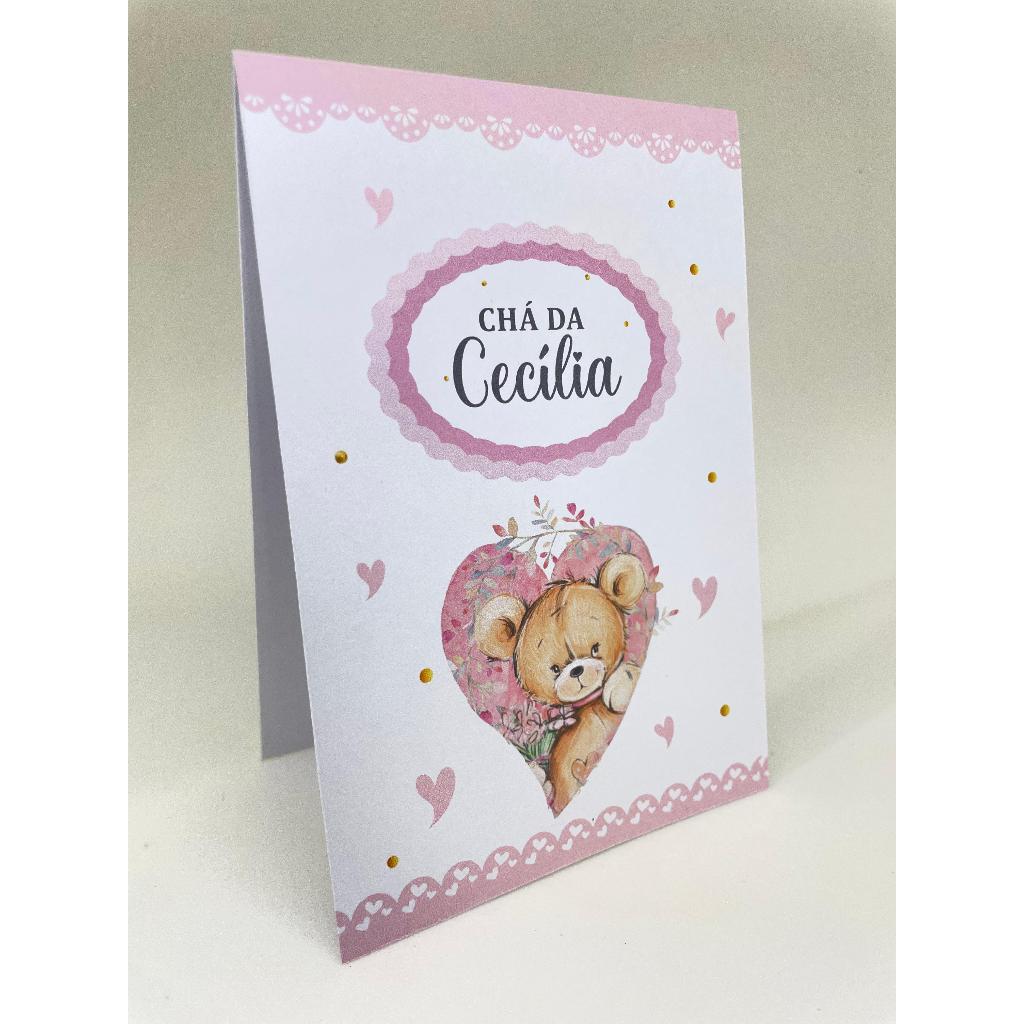Centro de mesa agradecimento personalizado para festas, Chá de bebê e aniversario infantil - Chá fraldas - Ursinha rosa