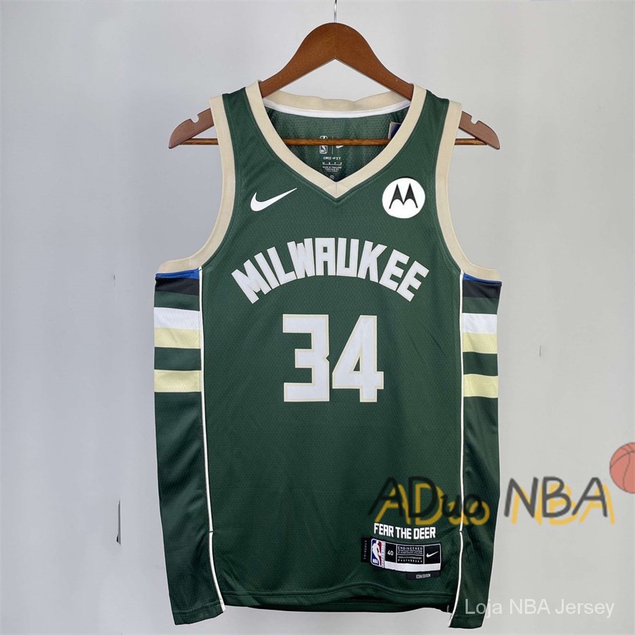 Hot Pressed Homens Camiseta 2023NBA Milwaukee Bucks #34 Giannis Antetokounmpo Camisa De Basquetebol Jersey