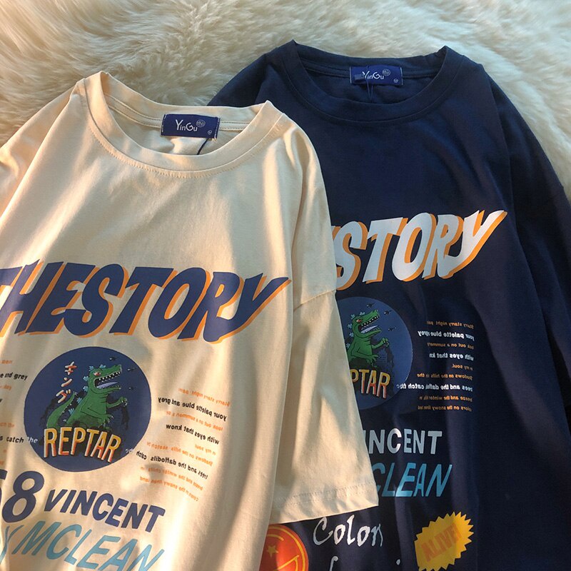 Oversize Hong Kong Estilo Manga Curta De Algodão Y2k Solta Casualmente Versátil Camiseta De Fundo Simples Tendência Casais