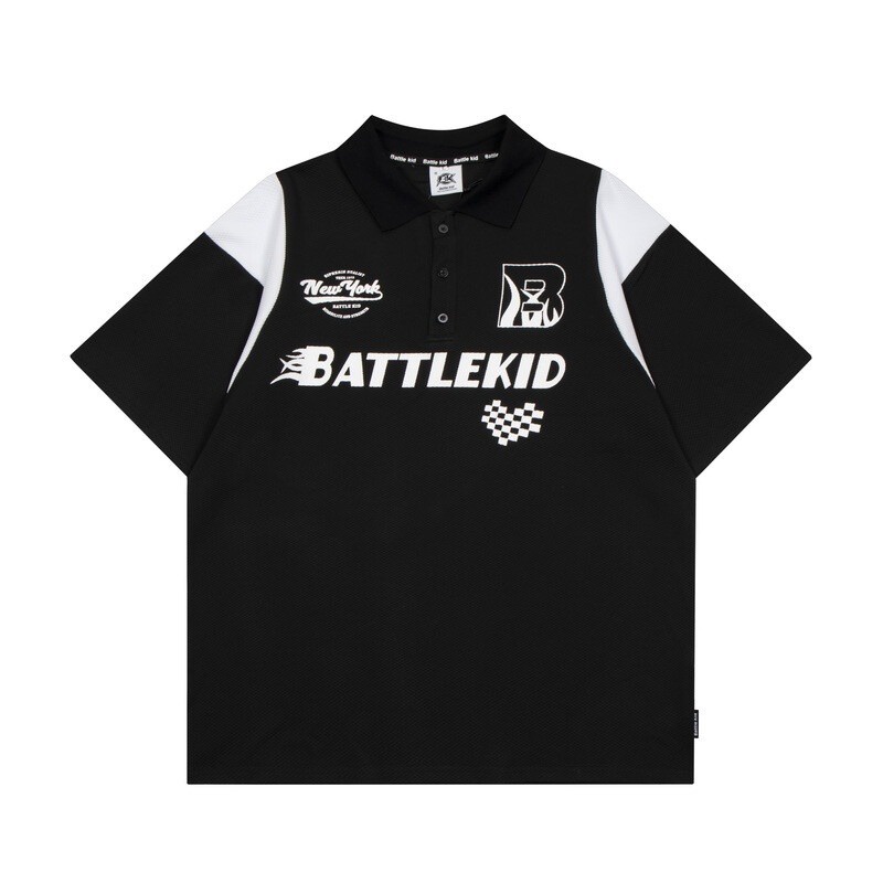 Retro Popular Camiseta de manga curta POLO Camiseta Lapela Niche ins Design Hong Kong Estilo Casal Top Meia Manga