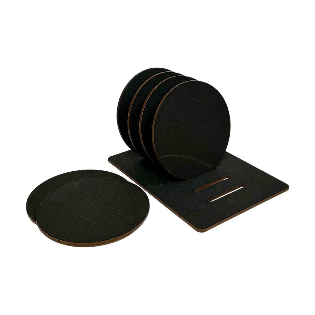 Kit 6 Porta Copos MDF Preto Cerveja Chopp Descanso Bolacha + Caixa de Armazenagem