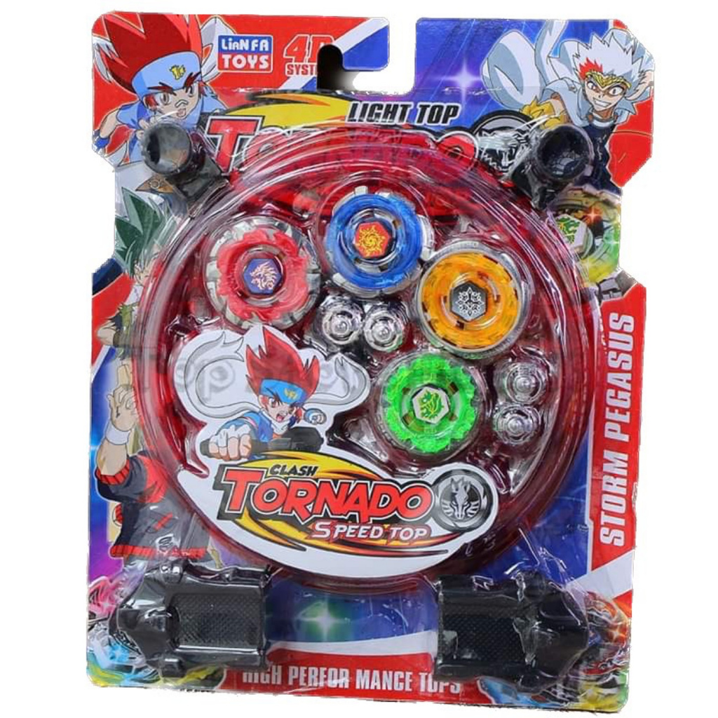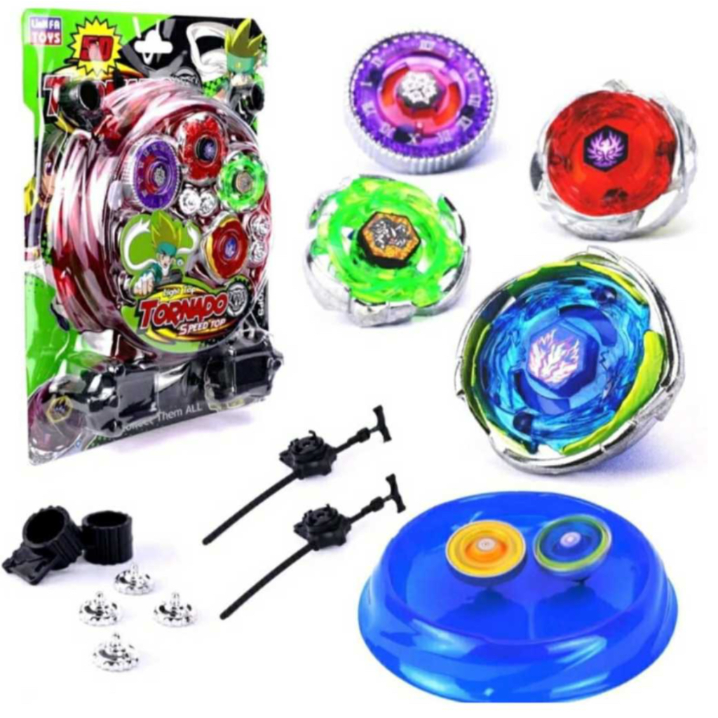 Kit 4 Beyblade Metal Com Led Luz + 2 Lançadores + 4 Ponteiras + Arena Brinquedo Pião Luz