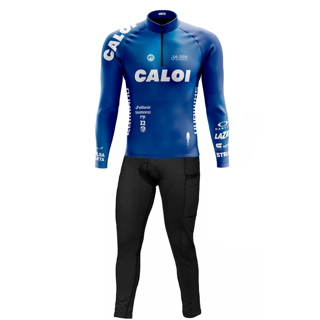 Conjunto Ciclismo Masculino Calca e Camisa Manga Longa Caloi Com Bolsos UV 50+