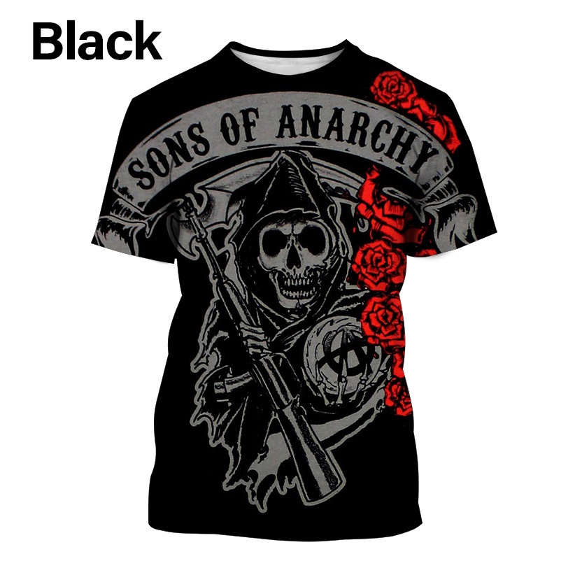 2023 Summer Casual Fashion of New Sons Anarchy 3D Impressão De Camiseta De Manga Curta Com Gola Redonda Para Homens