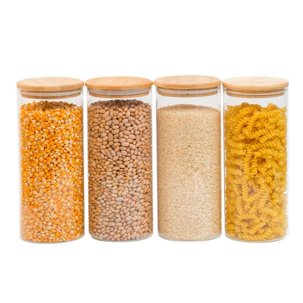 Kit 4 potes de vidro 1,3L tampa de bambu herméticos redondos armazenamento