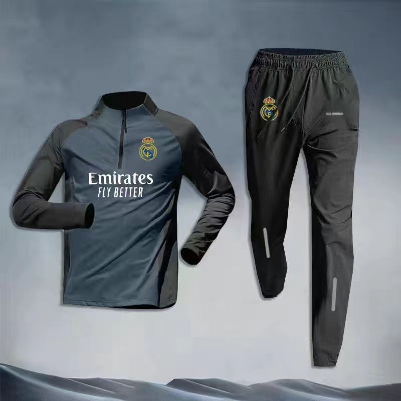 ⚡ Estoque Pronto Real Madrid Camisa De Treinamento De Futebol Masculino De Manga Longa Fato De Treino Meia Zíper Nova Roupa Corrida Esportiva Ao Ar Livre Vestindo De Secagem Rápida Respirável