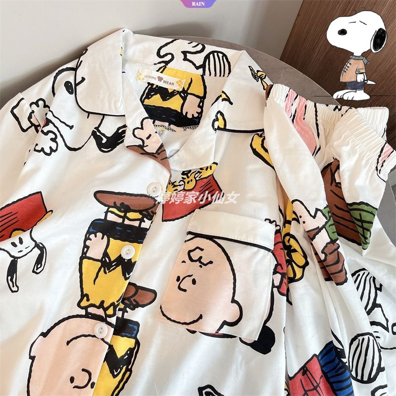 Desenho Animado Snoopy Charlie Pijamas Feminino Primavera E Outono Novas Calças De Manga Comprida Fato De Caseiro [RAIN]