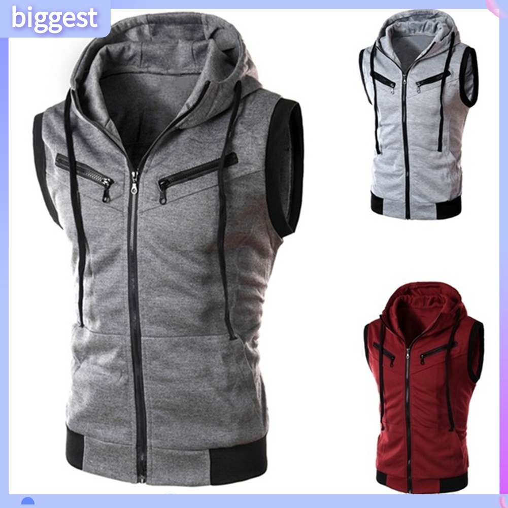 Nsmj_ Colete Masculino Com Capuz / Colete Sem Manga Com Zíper Em Cor Lisa