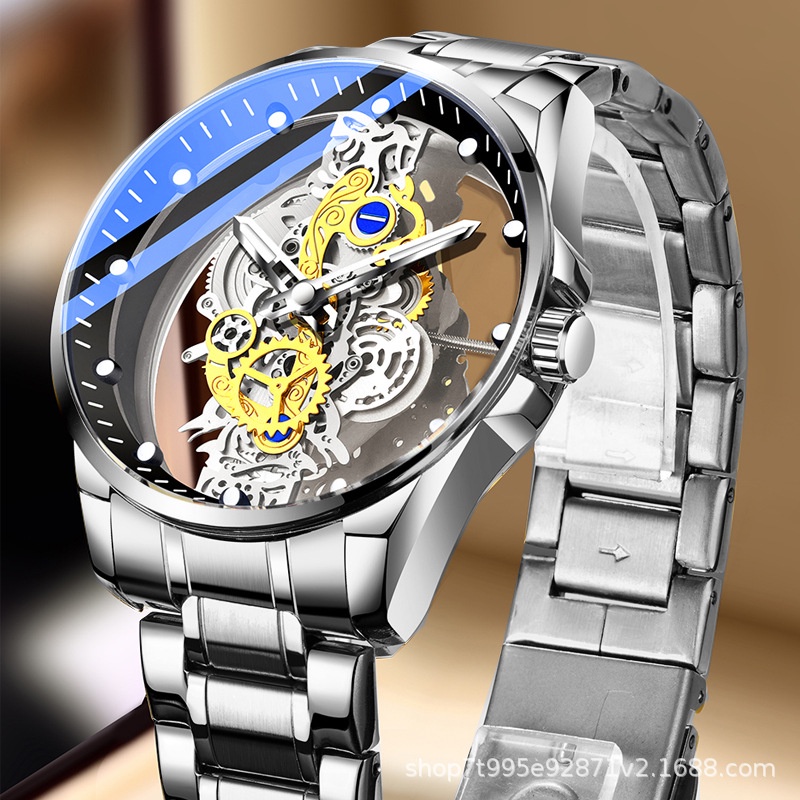 Relógio Mecânico Automático De Quartzo Luminoso De Dupla Face Transparente Oco À Prova D'água Para Homens