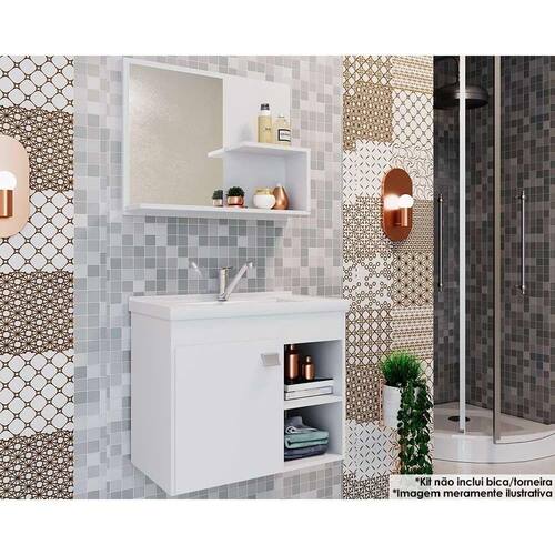 Armário De Banheiro Com Cuba E Espelho 1 Porta 2 Prateleiras Branco Chess 13689 - Compace