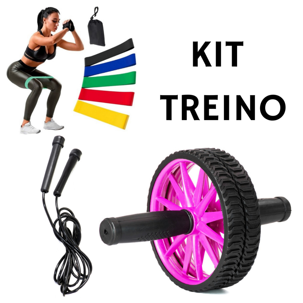 Kit Roda Abdominal Barra De Flexão Corda De Pular Exercício Treino