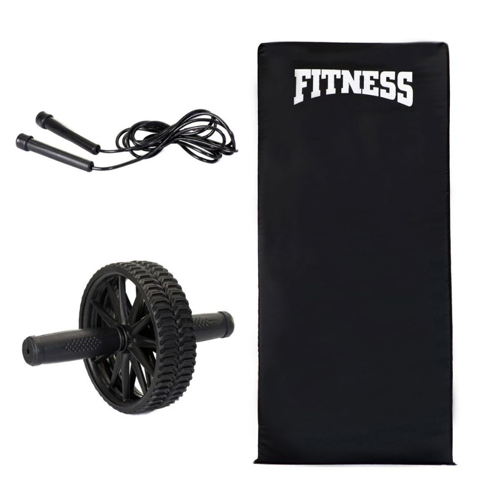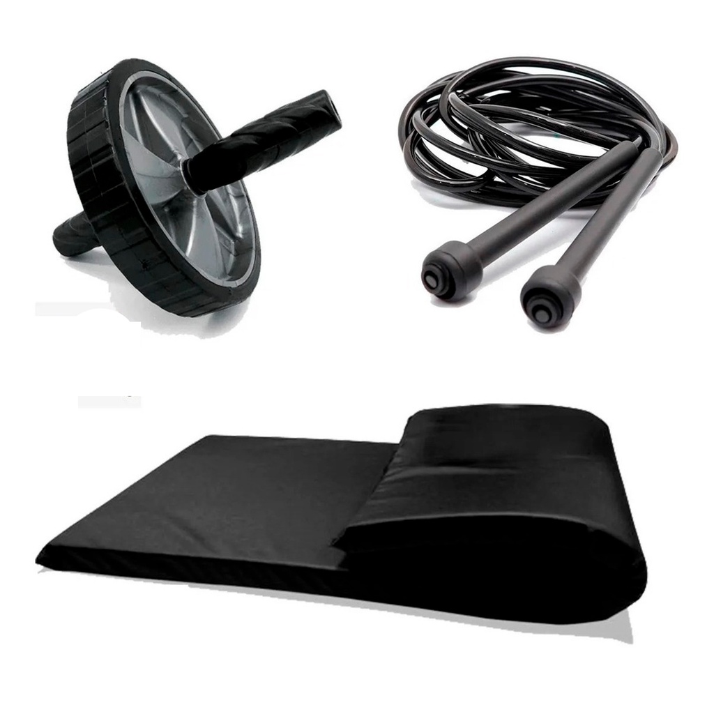 Kit Treino em Casa Funcional - Roda Rolinho Abdominal + Colchonete + Corda de Pular Fitness Emagrecer