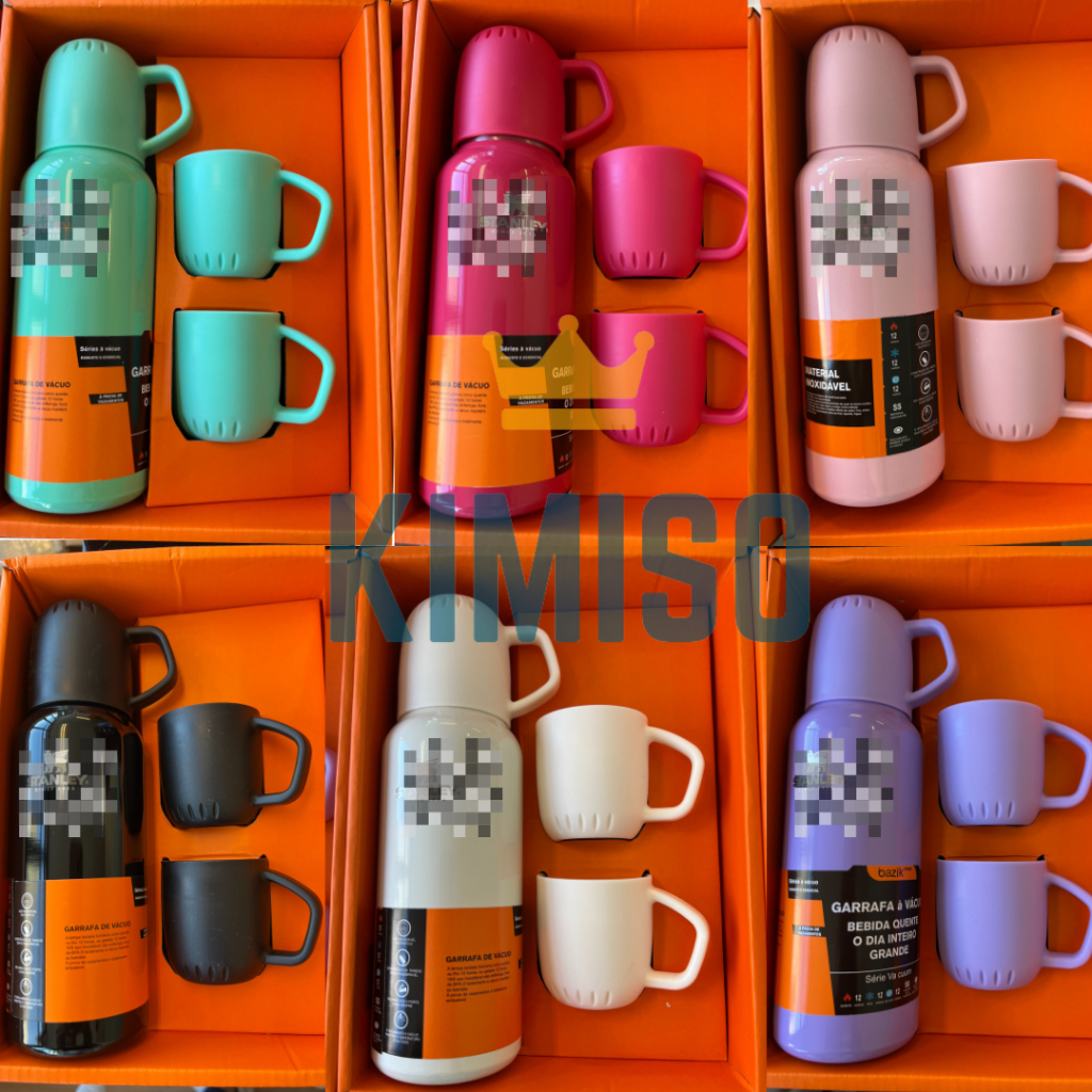 Garrafa Térmica Aço Inox 500 ML Com 3 Canecas Camping E Fitness