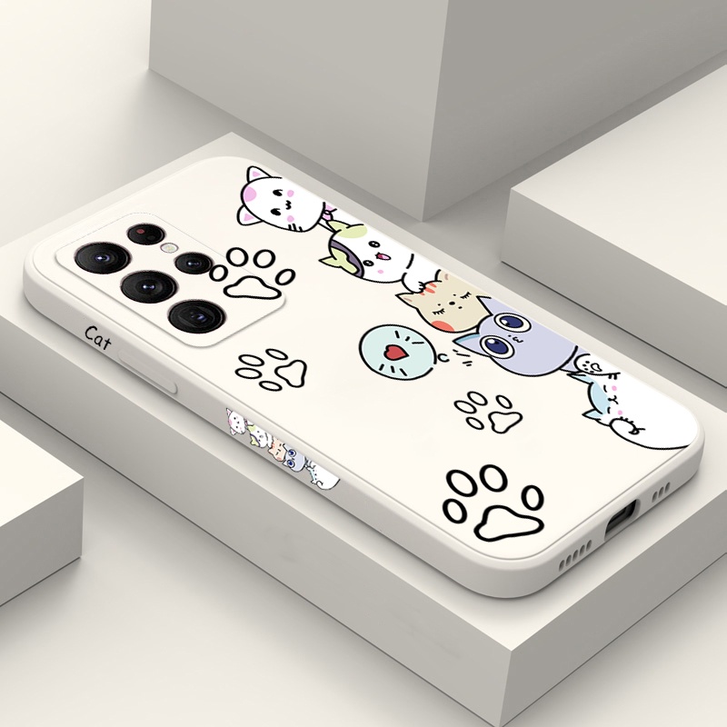 Capa De Silicone Para Celular De Desenho Animado Gato Estrelado Pata Brincando De Corda Samsung Galaxy S23 S22 S21 Ultra Plus S20 FE A14 A34 A54 A23 A33 A53 A73 A32 A52 A72 À Prova De Choque