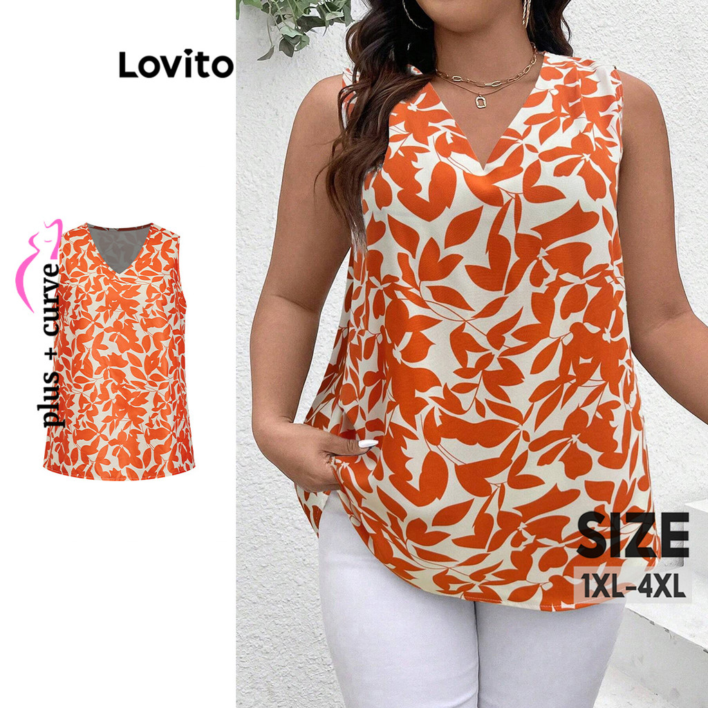 Lovito Plus Size Blusa Feminina Casual com Flores LBL09404