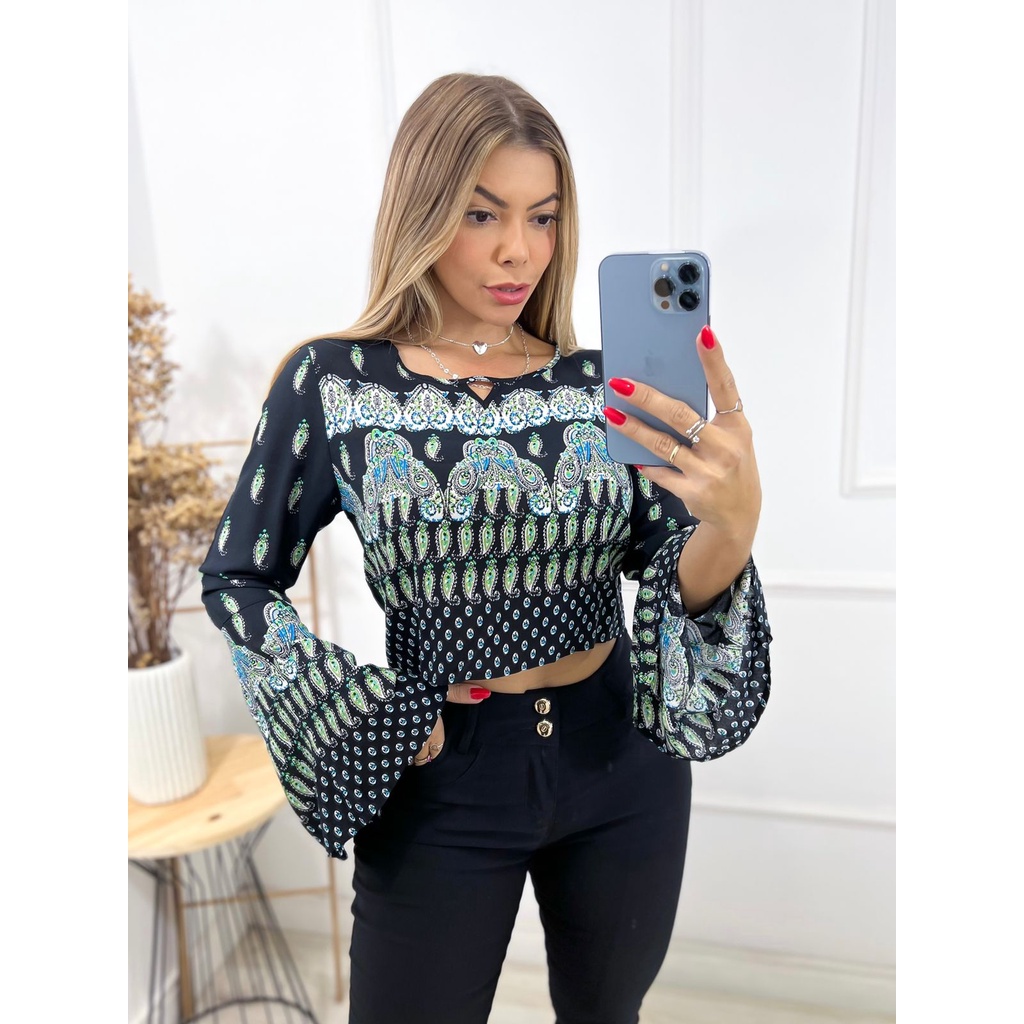 Cropped Estampa Florida Manga Fler Frente cruzado Ziper nas Costas 3085