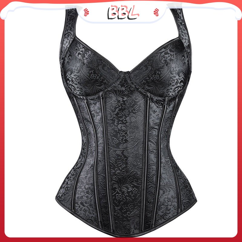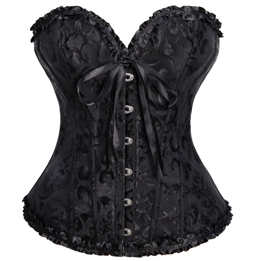 Espartilho Feminino Com Alças Overbust Preto Treinador De Cintura Mais Floral Jacquard Gótico Steampunk Corpete Bustier