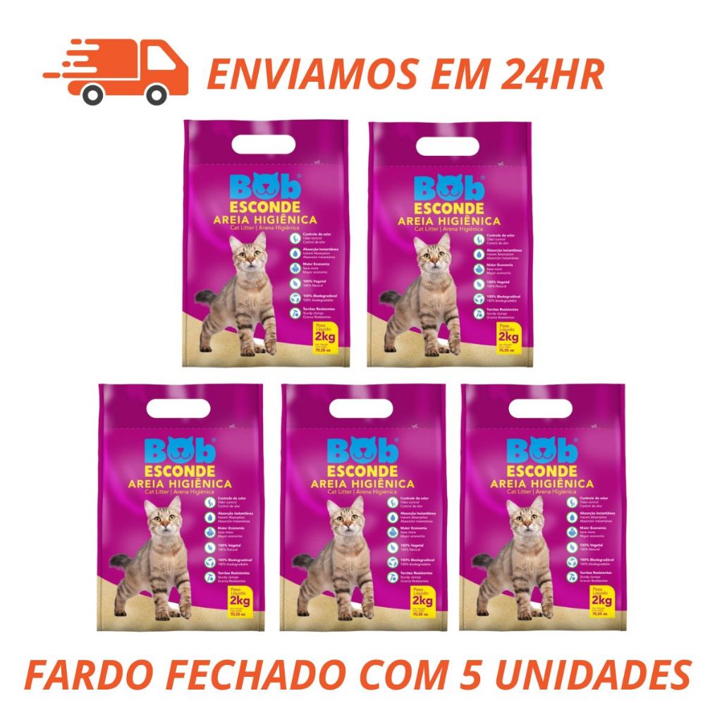 Kit 5 Unidades de Areia Higiênica Biodegradável para Gatos Bob Esconde Fardo