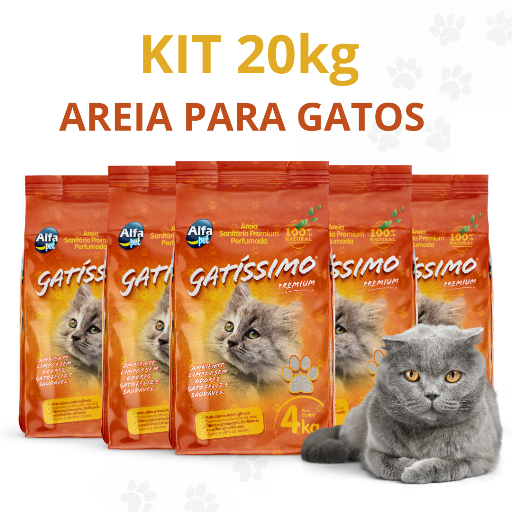 Kit 5 Unidades de Areia Sanitaria Ate 20Kg Para Gatos Perfumada Com Carvão Ativado Gatissimo
