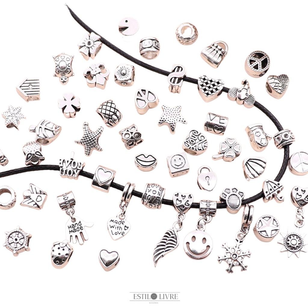 Kit 14 Berloques Pingente Banhado a prata 925 Pulseira