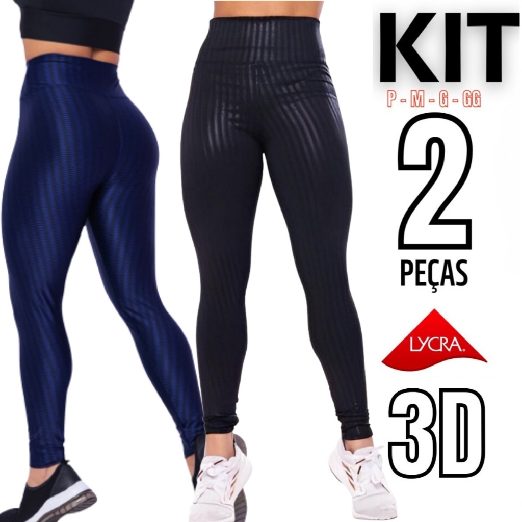 Kit 2 Calça Legging de Cirre 3D de Cós Reto Cintura Alta Academia Empina Bumbum
