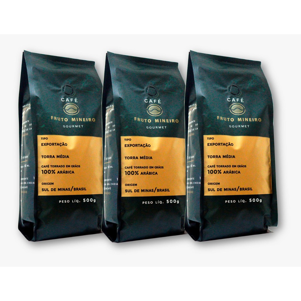 Café Gourmet em Grãos Fruto Mineiro Kit 03 Pacotes 500g - Preço especial