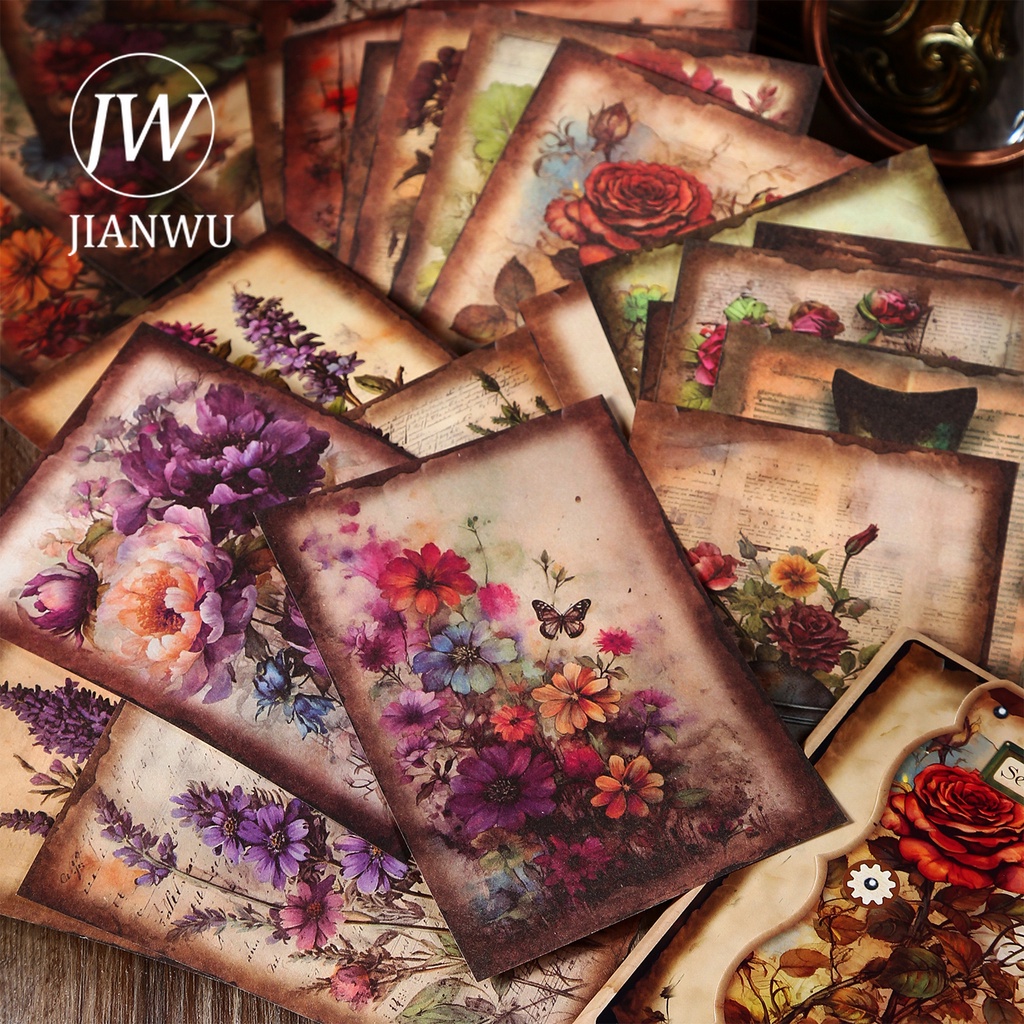 JIANWU 30 Folhas Gentle Wind Series Vintage Flower Pattern Decor Material De Decoração Papel De Colagem Criativa De Diário De Bricolagem Papelaria