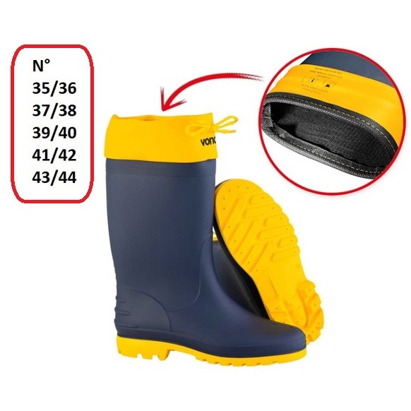 Bota de PVC Azul com Polaina (não resseca) Amarela Cano Médio com Forro - VONDER