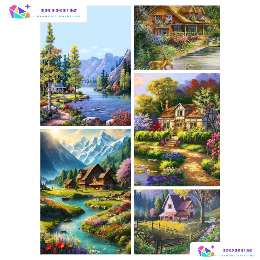 DOBUR | Pintura Diamante Conjunto De Pintura Com Diamante 5D Redondo/Quadrado Retro Casa Paisagem De Bricolagem Kits Numéricos Home Mosaico Lona Decoração De Parede Artesanato De Presente Para Adultos E Crianças