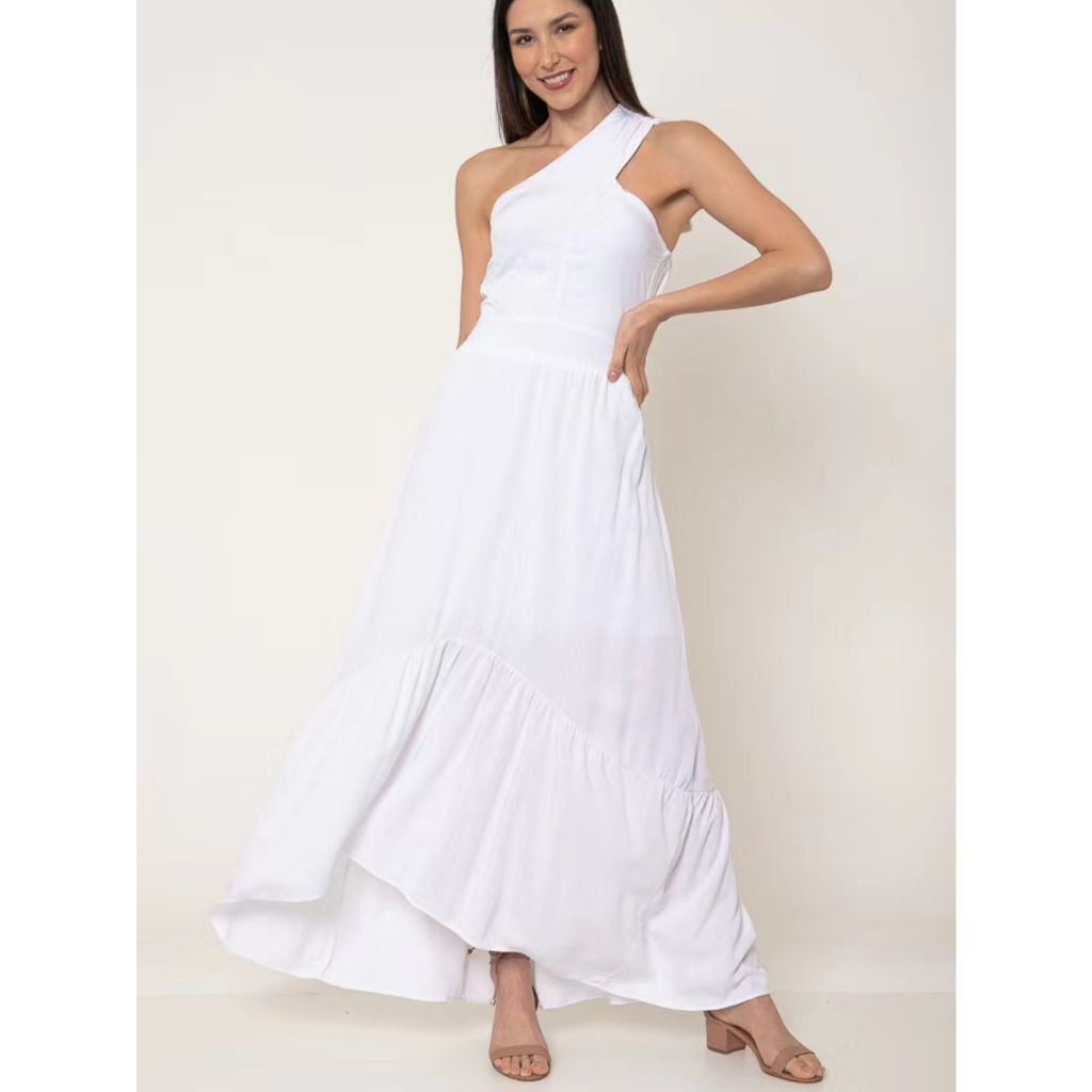 Vestido Longo Ombro Só Com Bojo Elástex Atrás Detalhe Levantado Na Frente Bem Elegante Moda Feminina cod. 042