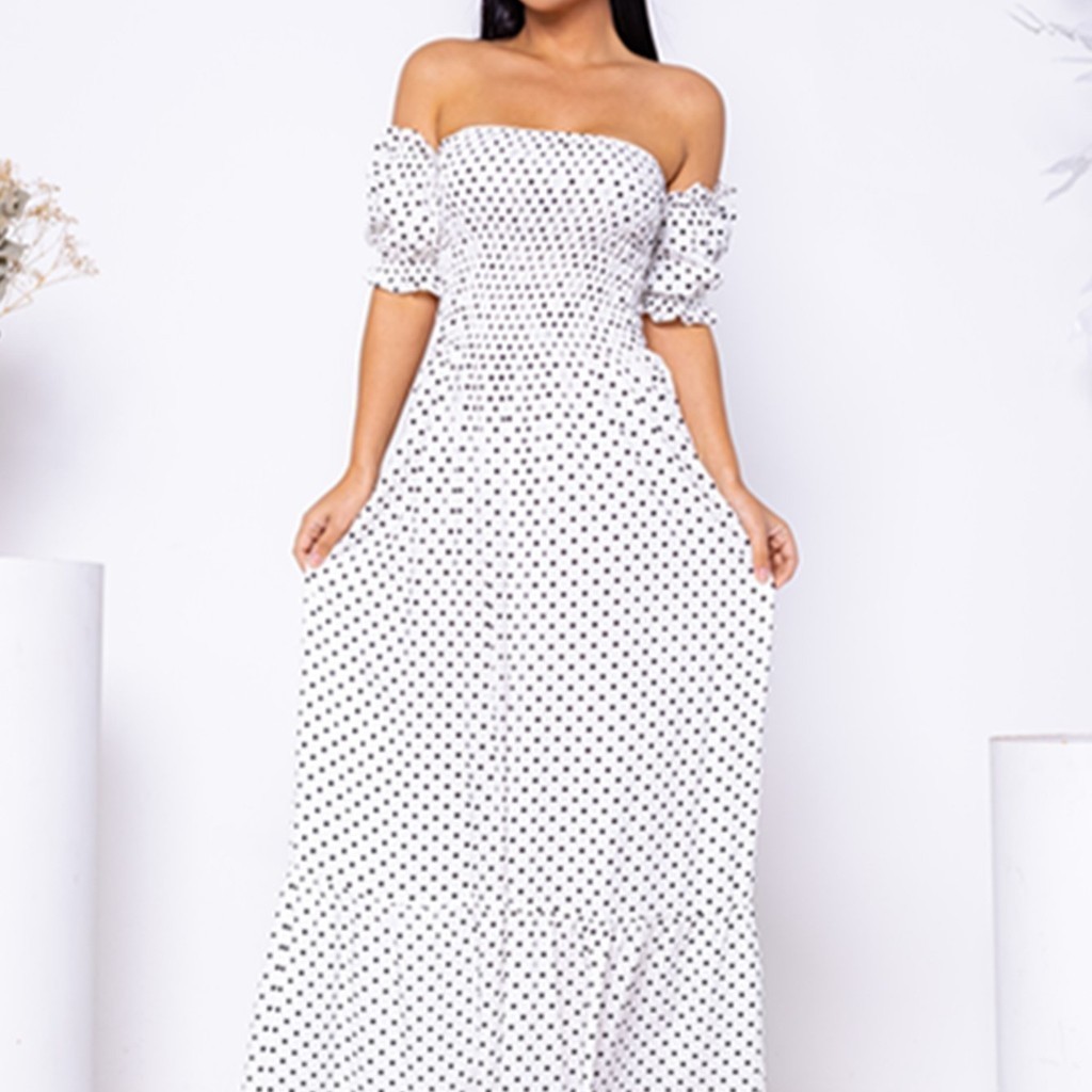 Vestido Longo Modelo Cigana Lastex No Busto Moda Feminina Bolinha COD/V06