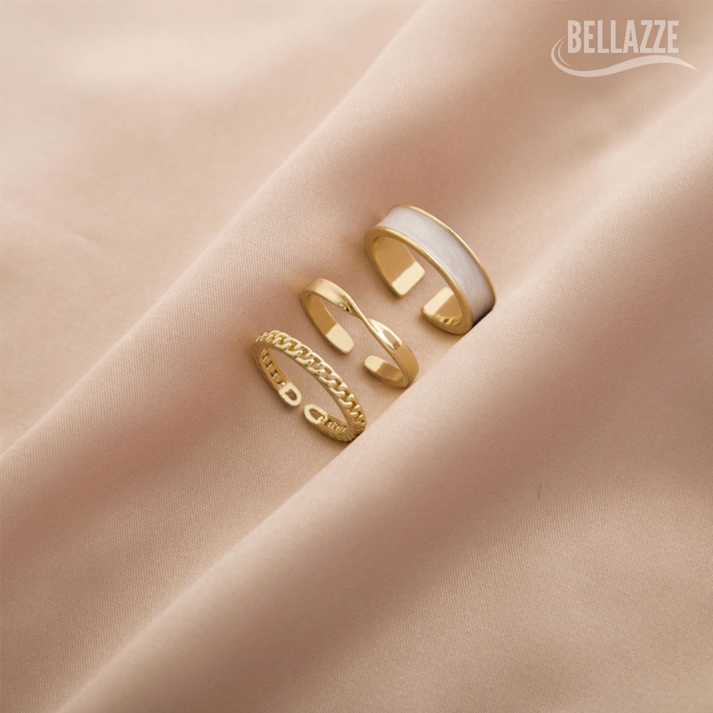 Conjunto 3 Anéis Moderno Elegante Abertura Ajustável